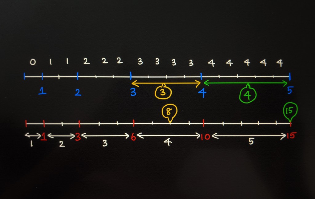 Let’s say that the randIndex returns 8. This index falls in the range (6 – 10]. So we return the index filling up this range which is 3.